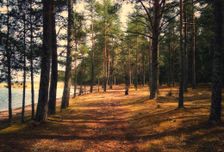- Сосновый лес. Целебный воздух, напоенный смолой, и золотистые стволы на солнце