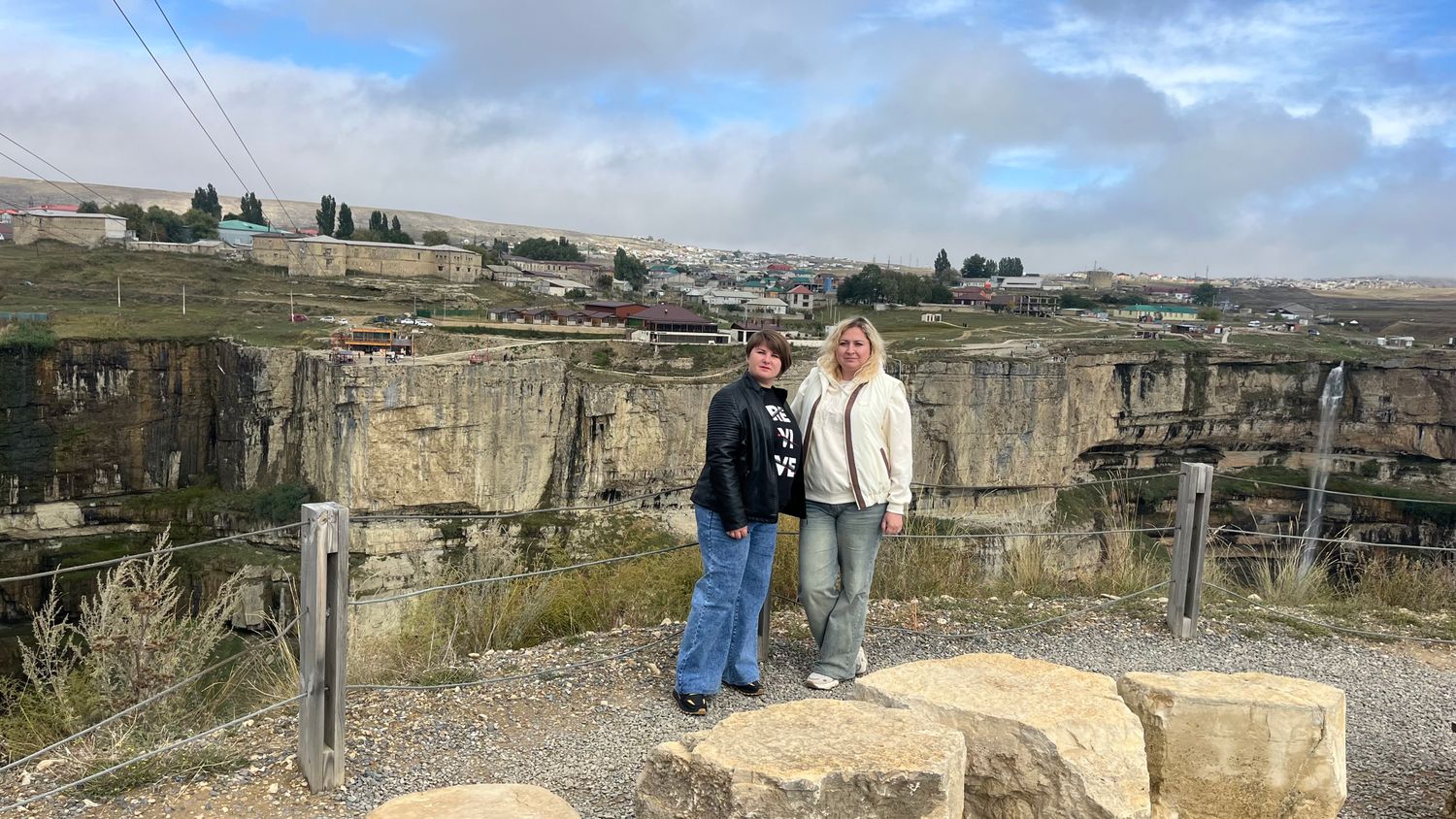 Теперь нас ждут виды со смотровой площадки на глубочайший каньон. Несколько сотен метров обрыва вниз. Между гор вьется бирюзовая река Сулак. Этот вид еще никого не оставлял равнодушным