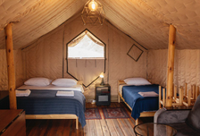 - Палатка в горах, где засыпаете под звёздами.