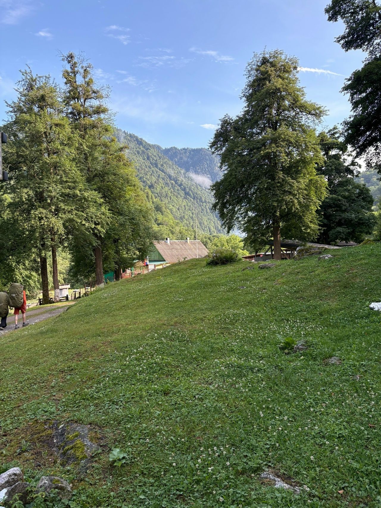 Держим путь до стоянки, расположенной за кордоном Третья рота. Идти будем по лесу и полянкам вдоль реки Малая Лаба, набор высоты плавный, переход будет несложным. Просторная стоянка среди пихтового леса оборудована беседками, костровищами и туалетами. Встанем на ночлег, разобьем лагерь и приготовим ужин.