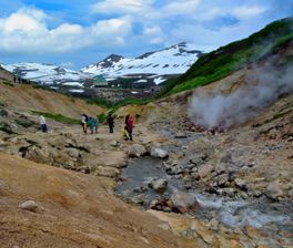Камчатка это природные контрасты, где лавовые поля и альпийская тундра соседствуют с пышной зеленью. Экскурсия подарит возможность за миниму время увидеть максимум камчатских чудес. Вы побываете в Маленькой Долине гейзеров. Здесь из-под ног вырывается пар, природа бурлит, хлюпает и клокочет. Этот островок прячется у подножия одного из самых активных вулканов Камчатки. А в природных термах вы снимете усталость от пеших прогулок получив заряд энергии для следующих приключений