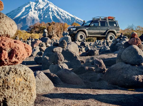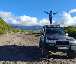 - Прокатимся по сухой речке, которая ежегодно меняет рельеф, чтобы оказаться у подножия сразу двух действующих вулканов Авачинского и Корякского