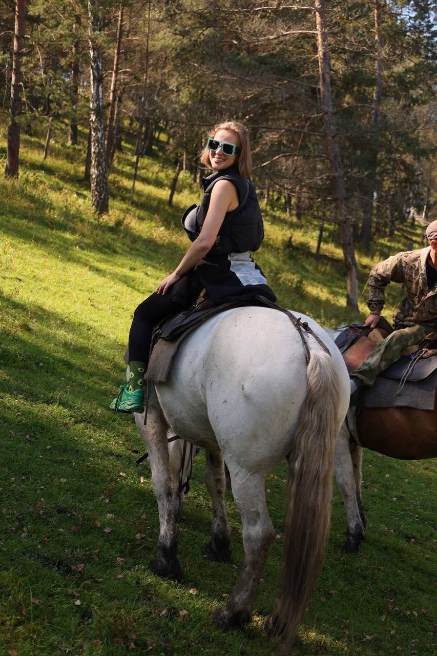 - — Яркие активности: конная прогулка среди маралов, катание на болотоходе, космическая баня
