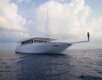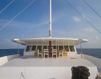 - На борту есть всё, что нужно для отличного круиза — от комфортабельных кают до бара. В яхт-тур по Мальдивам могут отправиться 14 гостей, и каждый из них будет чувствовать себя уютно. Здесь есть места на солнце и в тени, в салоне с кондиционером и под жарким тропическим солнцем. Бассейн не нужен — океан на Мальдивах лучше любого бассейна.