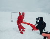 - Главная съемка пройдет на высоте, куда нас поднимет канатная дорога — с белоснежными вершинами, стильной моделью и сноубордом.