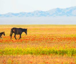 В России в этот период природа только просыпается, а в предгорьях, степях и пустынях Северного Тянь-Шаня красивое комфортное начало лета.