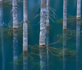 Озера: Балхаш, Тузколь (с видом на гору Хан-Тенгри), Деревянное с барханами, уходящими в воду, Каинды с деревьями, стоящими в воде, Бартогойское водохранилище.