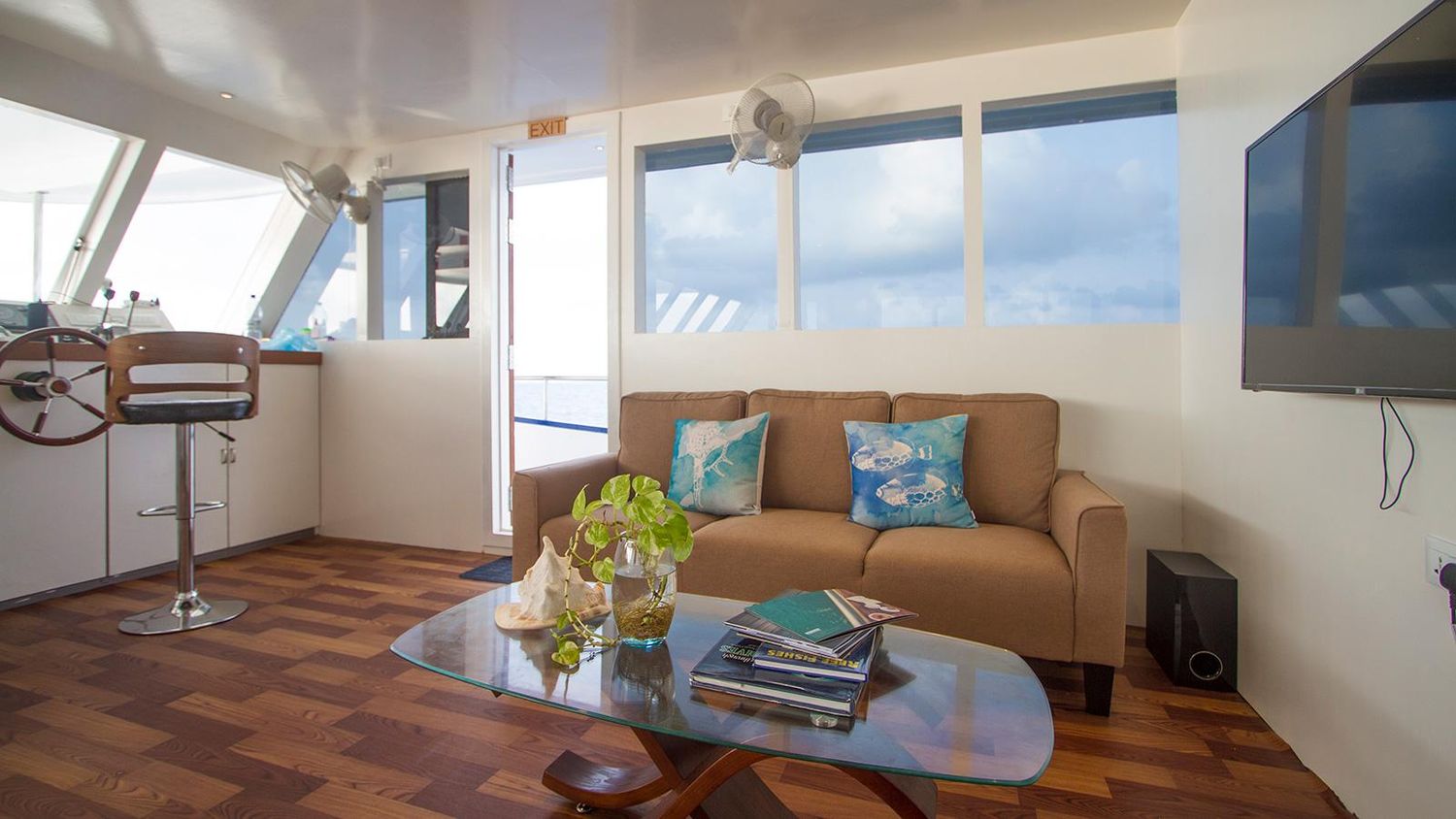 - Просторная яхта 2021 года постройки и 2024 года реновации. На борту есть всё, что нужно для отличного круиза — от комфортабельных кают до бара. В яхт-тур по Мальдивам могут отправиться 20 гостей, и каждый из них будет чувствовать себя уютно. Здесь есть места на солнце и в тени, в салоне с кондиционером и под жарким тропическим солнцем. Бассейн не нужен — океан на Мальдивах лучше любого бассейна.