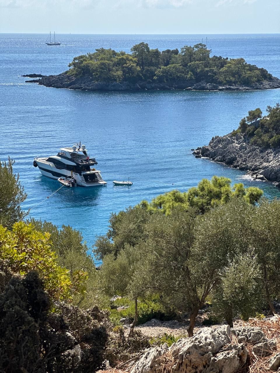 Наша яхта остаётся рядом и ждёт нас в бухтах.