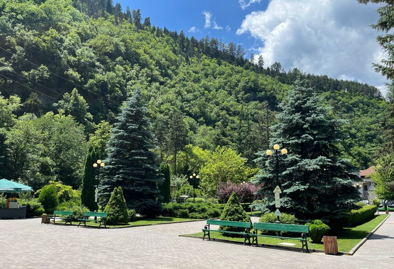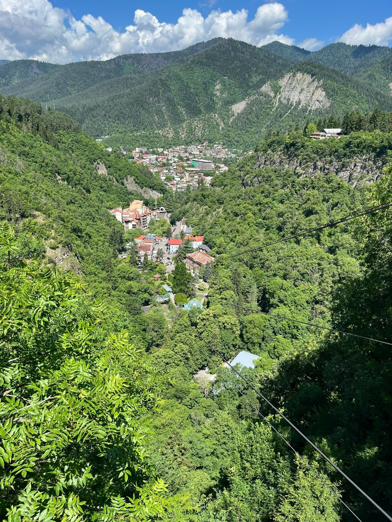 - Спуск к источнику Святой Нино Если не полениться и сойти по длинной лестнице в ущелье, попадёшь в прохладу и зелень. Место очень тихое, почти мистическое, а вода из источника считается целебной.