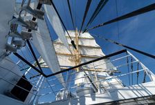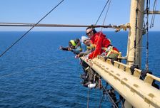 - Взобраться на мачту высотой с 17-этажный дом 49,5 метров над водой. Самые смелые поднимаются на реи, чтобы поставить паруса, и видят море с высоты птичьего полёта.