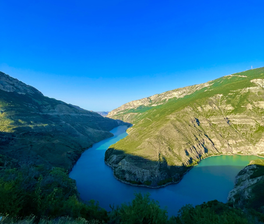 Чиркейское водохранилище крупнейшее водохранилище Северного Кавказа, образованный на реке Сулак, глубина 220 м. и площадью 42 т. кв. км.