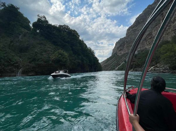 И самое любимое, мы с вами с ветерком прокатимся по самому водохранилищу и проплывем в красивое ущелье Орлиное гнездо.