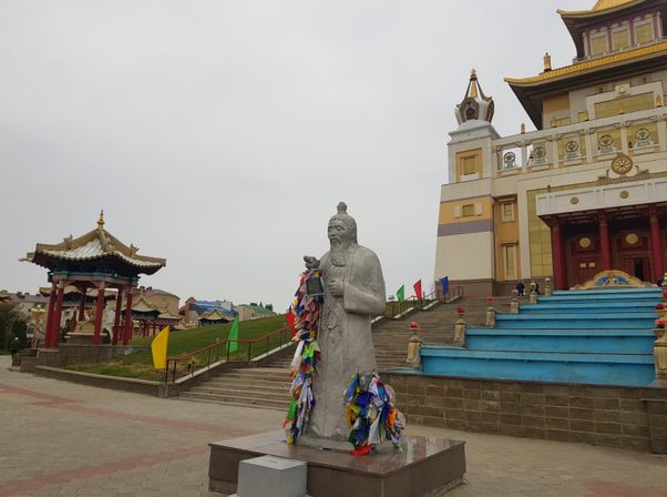 Посещение храма Золотая обитель Будды Шакьямуни. Главная достопримечательность столицы - это Золотая обитель Будды Шакьямуни — центральный калмыцкий буддийский монастырь, один из крупнейших храмов российского Юга и один из самых больших буддийских храмов Европы. Все 5 этажей устланы коврами — по ним ходят босиком, а во время молитв на них можно сидеть. Внутри храма на алтарной части установлена 10-метровая статуя Будды, покрытая сусальным золотом и наполненная благовониями и свитками с молитвами. Мы обязательно посетим центральный хурул Элисты и узнаем сколько ярусов в главном храме и почему? Какой смысл несут множественные ступы и как использовать молельные барабаны? Вы узнаете кто такой Белый старец Вселенной, почему его свято почитают калмыки, и в чём отличие практики вероисповедания буддизма калмыками от практики бурятов и монголов.