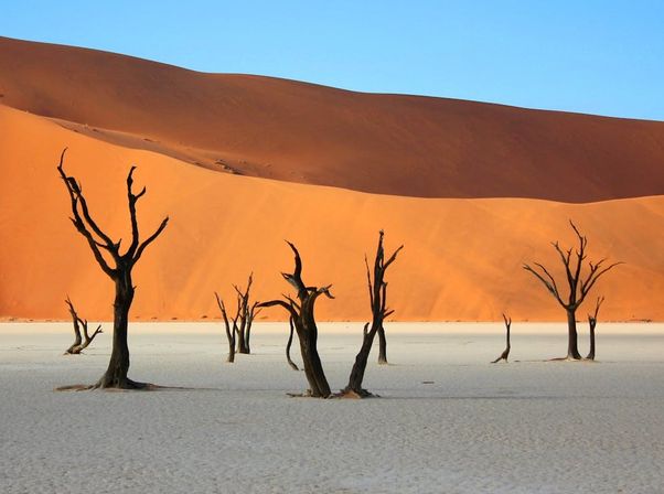 - Увидеть древнейшие красные дюны в Соссусфлей и мистический пейзаж Дэдвлей: Подняться на самые высокие в мире дюны (до 350 метров), чтобы встретить рассвет, и увидеть Мертвую впадину с черными скелетами деревьев, возраст которых достигает 900 лет