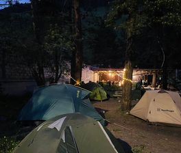 Вечером вас ждёт тёплая атмосфера: знакомство с участниками, душевные разговоры у костра и сытный ужин. Ночь проведём в палатках, засыпая под успокаивающий шум леса и горной реки.