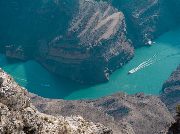 Расположенное в горах Чиркейское водохранилище — рукотворная красота, созданная на реке Сулак для возведения Чиркейской Гэс. На этот красивейший водоем туристы приезжают ради прогулки по самому глубокому в мире Сулакскому каньону и потрясающих видов, напоминающих фьорды Норвегии.