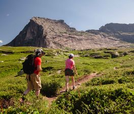 - В этом туре вы сможете увидеть Ергаки без рюкзаков, ведь с рюкзаками мы идем только до лагеря. За весь тур мы увидим Висячий камень, Спящего Саяна, озеро и перевал Художников, скала Парабола, пики Зуб Дракона и Звёздный. Зайдем на гору Тушканчик, откуда открывается вид на 360 на весь парк и его окрестности.