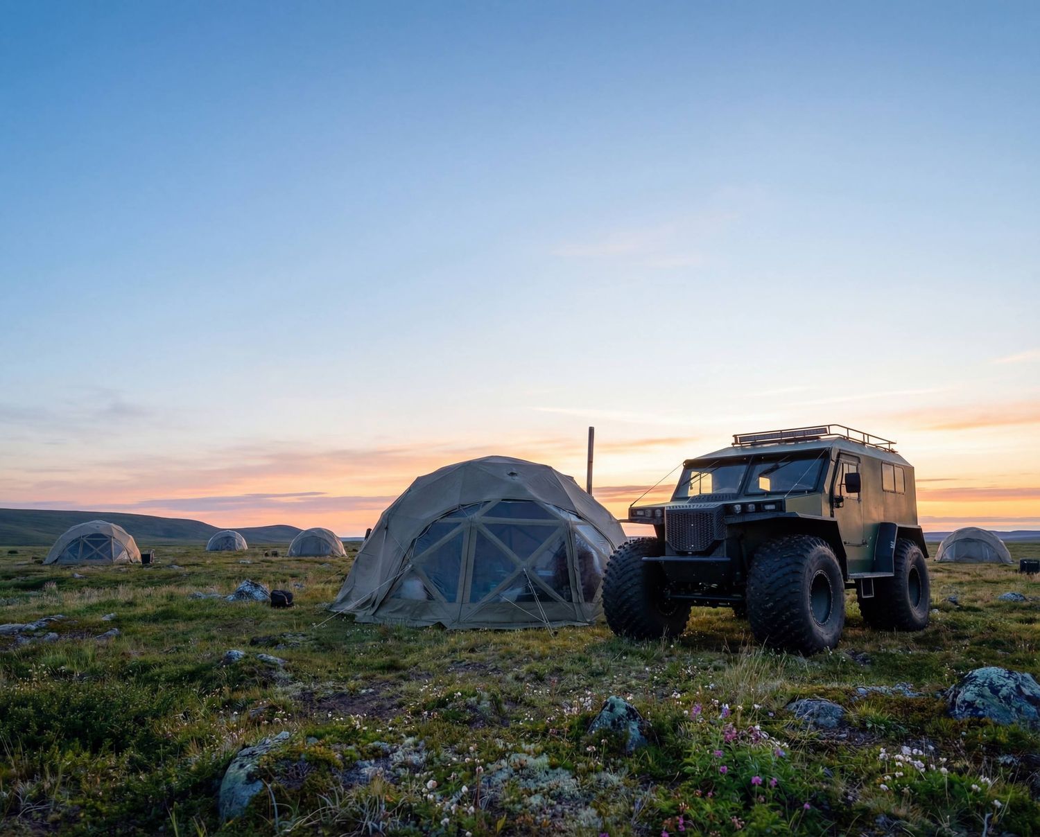 Тур на вездеходах по полуостровам Средний и Рыбачий — это захватывающее приключение, полное впечатлений. Современные кемперные дома, купольные шатры и качественные палатки обеспечат уютное проживание даже в суровых условиях, что выгодно отличает нас от других предложений, где часто приходится жертвовать комфортом ради доступности.