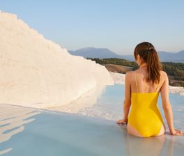 - Хождение по облакам. Вы босиком пройдете по ослепительно-белым травертиновым террасам, ступая в тёплые бирюзовые бассейны, словно застывшее молоко. Ощущение, что идёшь по замерзшему водопаду на краю света.