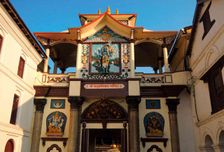 - - Храмовый комплекс Сваямбунатх это само возникшая, буддийская золоченая ступа на вершине горы, здесь находится огромная золотая ваджра - оружие царя богов Индры. Отсюда открывается прекрасный вид на весь город и на Гималаи. Это место пребывания изначального Будды.