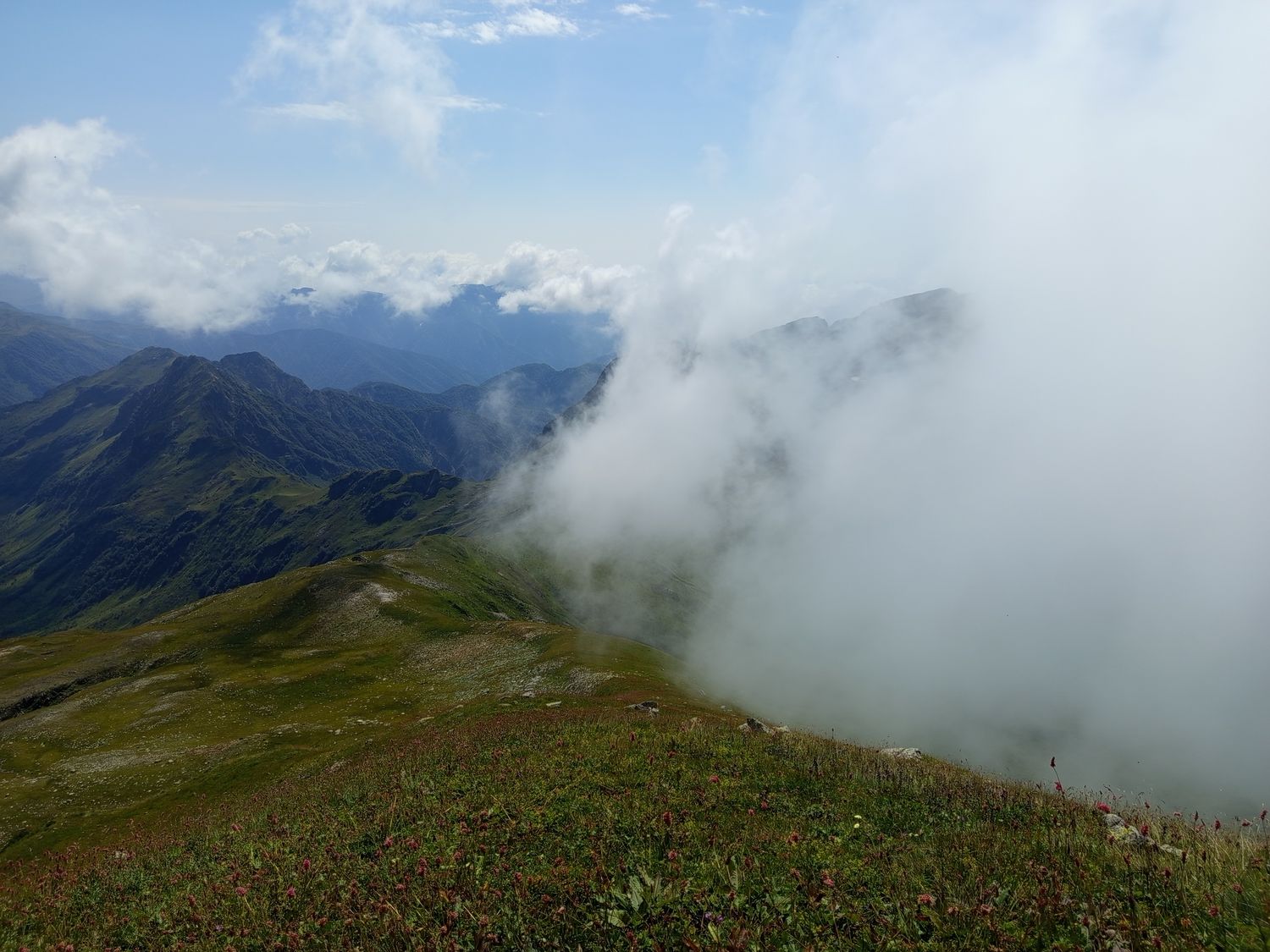 В ясную погоду хорошо просматриваются пики Домбая, священная (для абхазов) гора Эрцаху и высшая точка Абхазии Домбай Ульген (4.4046м.). Нас встретят фирновые поля, бараньи лбы, и множество ледниковых цирков (каров)!