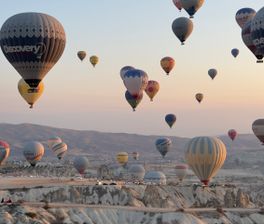 Встретить утро с видом на сотни шаров парящих в небе и насладиться бескрайними пейзажами Каппадокии!