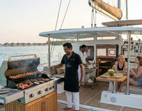 Ваш отдых на борту — это гастрономическое приключение. Наш повар ежедневно создает шедевры, объединяя европейскую изысканность с экзотическими акцентами. Вас ждут завтраки с видом на лагуну, обеды из свежевыловленного тунца и ужины под звездным небом, где локальные деликатесы дополняются прохладным вином. Это состояние абсолютной свободы, когда единственное решение, которое вам нужно принять — это выбрать между снорклингом с мантами или чтением книги в сетке над водой.
