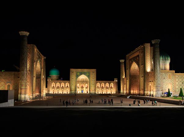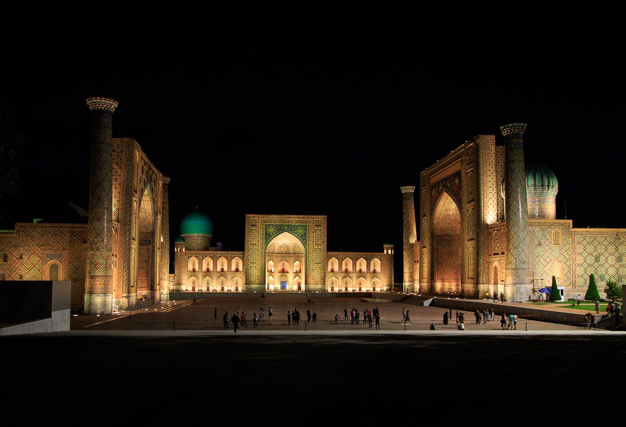 13:30 — 15:30 Сердце империи: Площадь Регистан Мы начнем с визитной карточки Узбекистана. Вы увидите ансамбль из трех величественных медресе: Улугбека, Шер-Дор и Тилля-Кори.