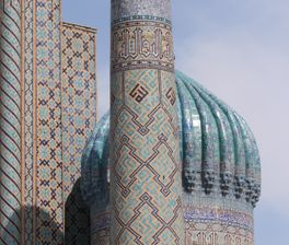 15:30 — 16:30 Мавзолей Гур-Эмир (Усыпальница Тимуридов) Следом мы отправимся к месту покоя великого Амира Темура (Тамерлана). Огромный синий ребристый купол виден издалека. Внутри — роскошное убранство из папье-маше, золота и нефрита. Гид расскажет легенды о проклятии гробницы и о том, как строилась эта мощная империя.