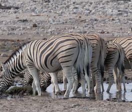 Кульминация — национальный парк Этоша. Белый солончак, который видно из космоса, и тысячи зверей у водопоев. Вы ведёте свою машину по пыльным дорогам, и вдруг из кустов выходит лев. Он смотрит на вас полминуты, потом ложится прямо на дорогу и начинает чесать ухо. Вы стоите в пробке из двух машин, боясь завести мотор. Слоны, жирафы, зебры, носороги — они здесь настоящие хозяева, а вы лишь гости.