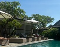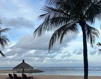 Отдых после перелета на пляже отеля.