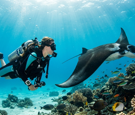 - Погружения с нуля до первого сертификата в одном из самых красивых подводных регионов мира: черепахи, рифы, манты.