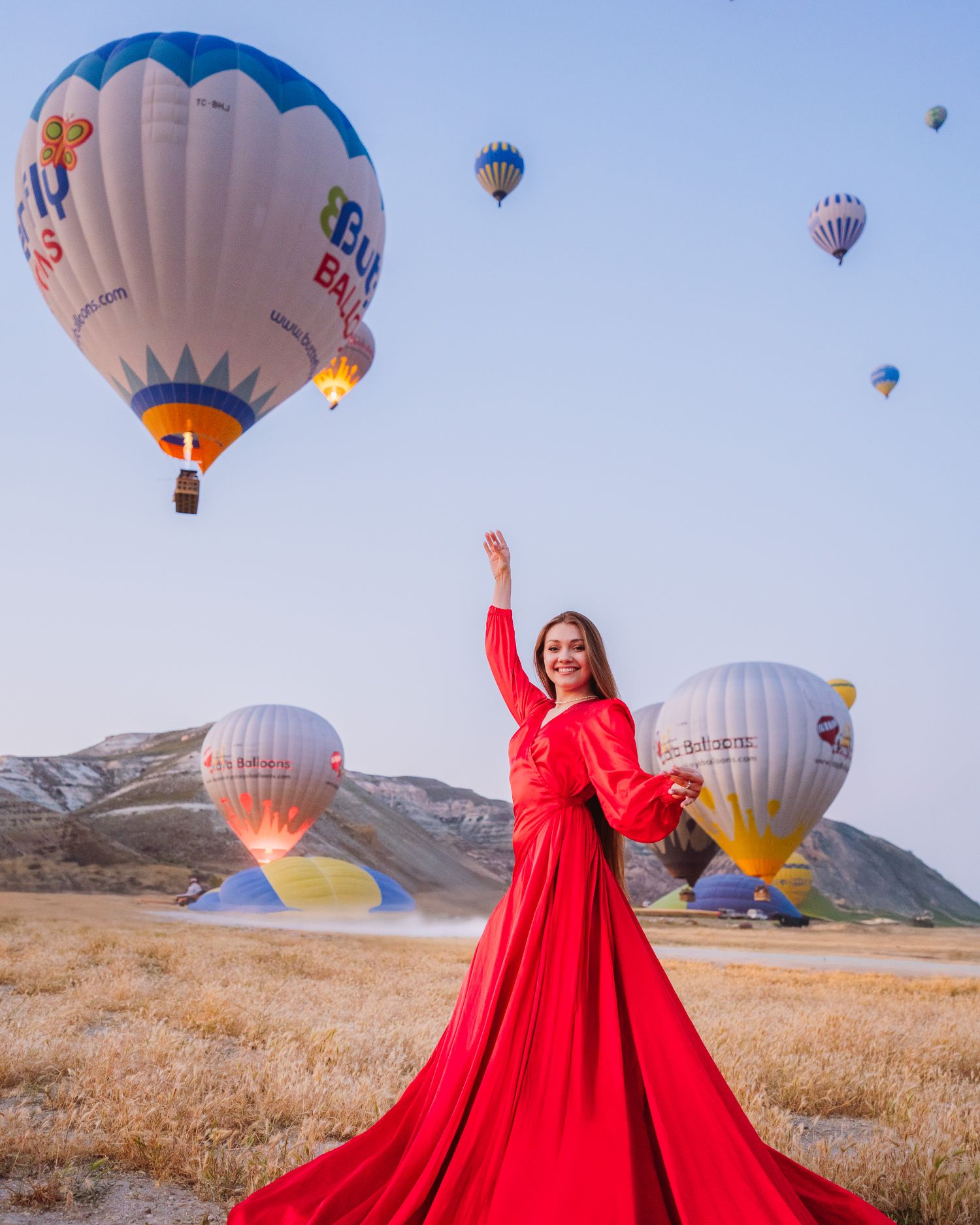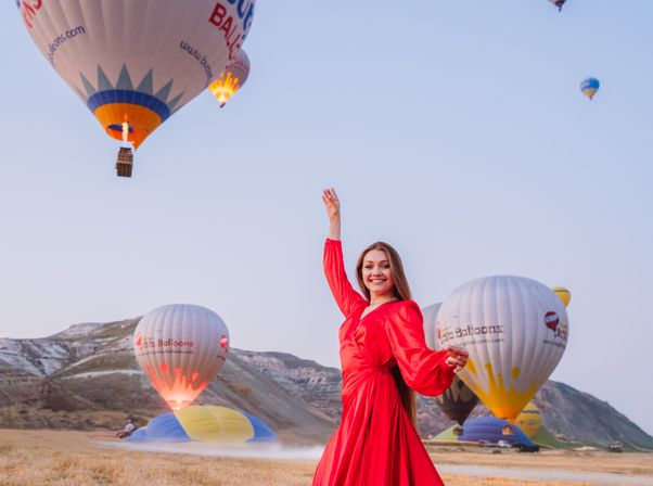 Встретить утро с видом на сотни шаров парящих в небе и насладиться бескрайними пейзажами Каппадокии!