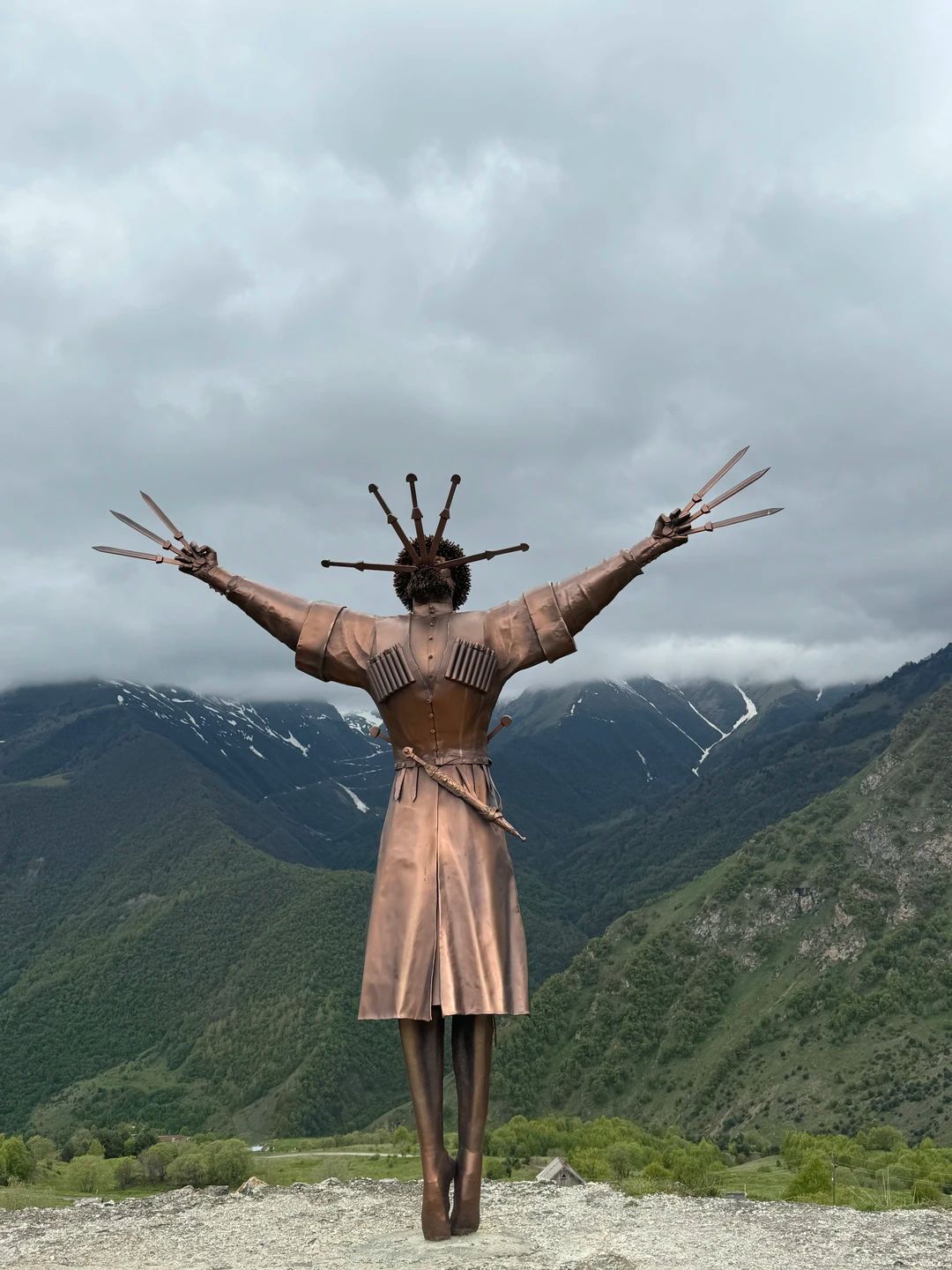 На очереди — самое высокогорное село Северной Осетии Згид, где вы увидите арт-объект Танцующий джигит с кинжалами