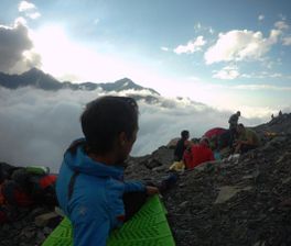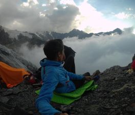 Разнообразен рельеф на этом пути нам предстоит пересечь ледник и скалы, осыпи и снежные склоны. Наши инструкторы профессиональные альпинисты они научат вас всем необходимым приёмам, обеспечат надёжную страховку и поддержат в любой ситуации.