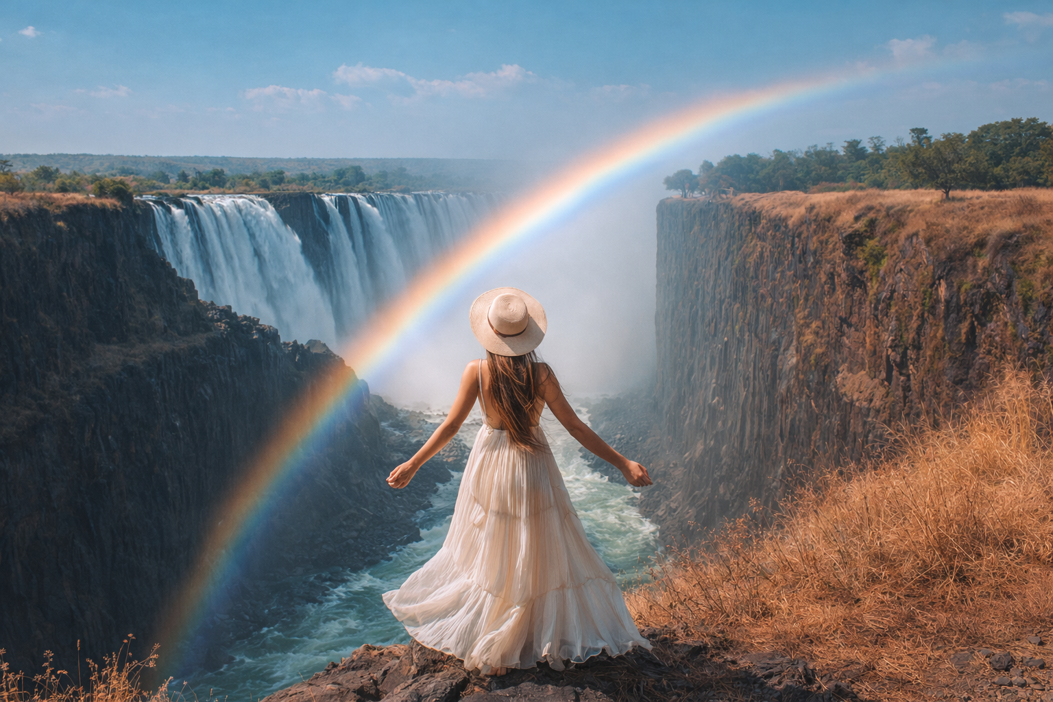 Твоё путешествие начнётся с одного из самых впечатляющих мест планеты — водопада Виктория, где ты почувствуешь настоящую силу природы и увидишь грандиозные водные каскады своими глазами. Мы посмотрим на водопад с двух сторон — из Замбии и Зимбабве, чтобы
