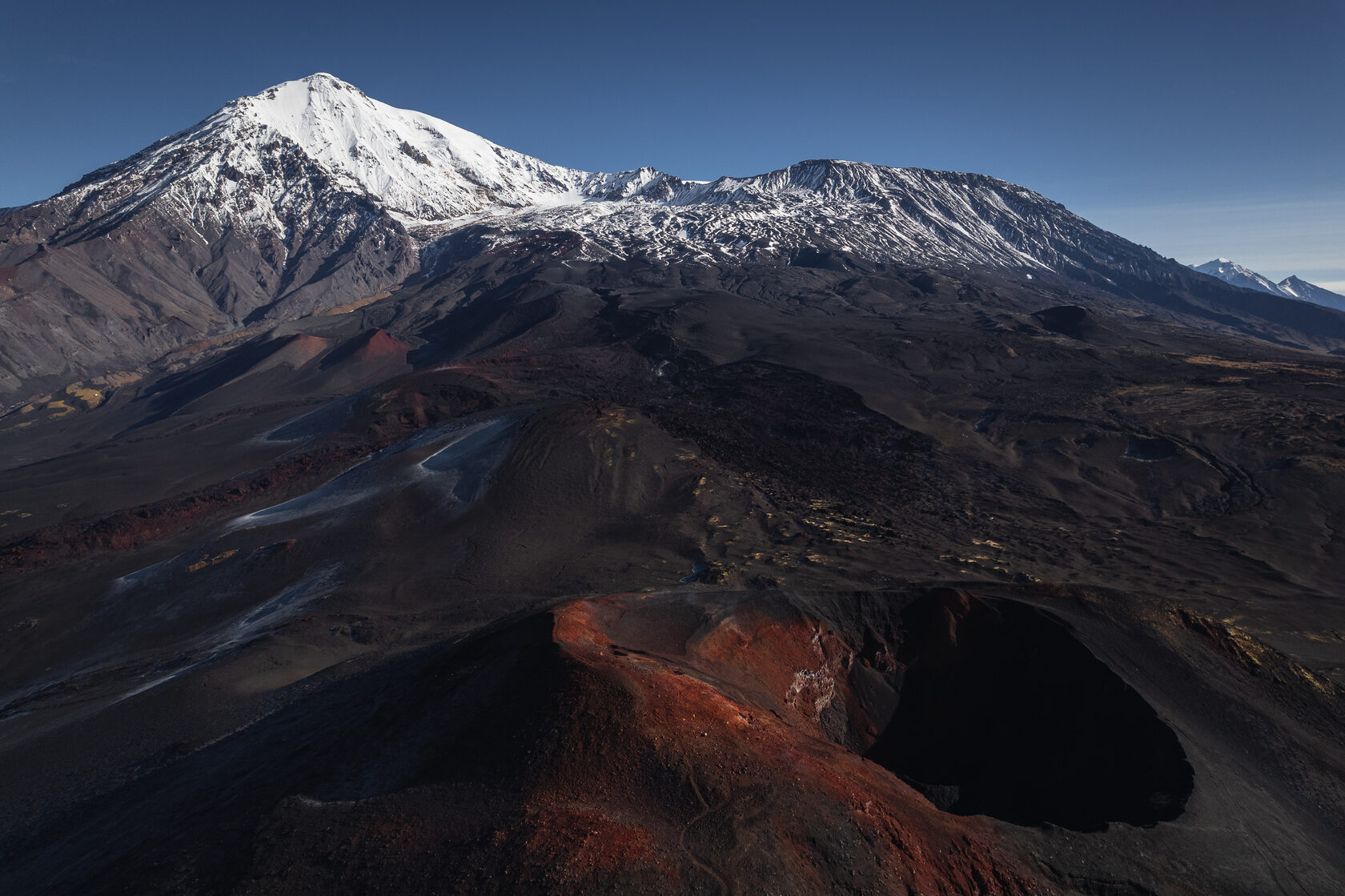 Это джип-тур на Толбачик — для тех, кто хочет увидеть Камчатку по-настоящему, но без хаоса и самостоятельной организации. За 6 дней мы едем туда, куда обычные экскурсии не доезжают: Толбачинское плато, лавовые поля, пещеры, Мёртвый лес, закаты на