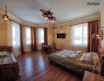 Семейный трехместный номер имеет площадь 40м2, оборудован одной большой (не раздвигается) и одной стандартной кроватью.